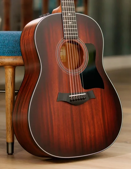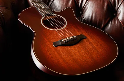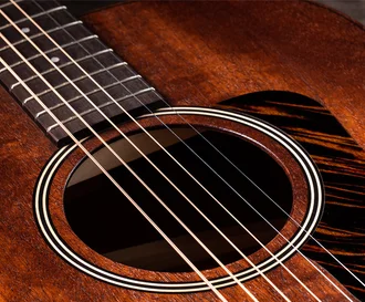 Overview: Harder, denser woods like mahogany and koa that are used on the back and sides of a guitar are sometimes used as tops. Their stiffness initially translates into a bright tone and tends to need more play-in time to open up, but the more a mahogany-top guitar is played, the more it develops overtones that contribute to a fuller, richer sound. A mahogany-top guitar might appeal to rootsy players who like a little extra punchiness in their tone.