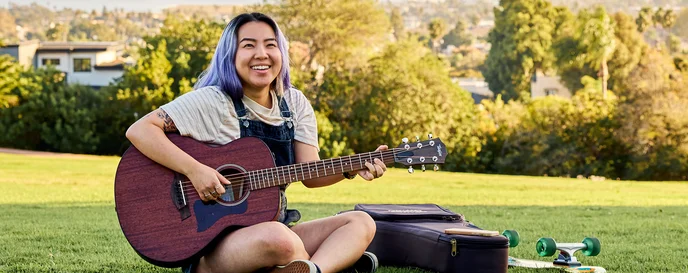 The unique acoustic properties of top woods help color a body shape’s fundamental sound. The key is to find the wood that matches up best with your playing style, like the warmth of a cedar top for fingerpicking and the feeling of responsiveness in your hands.